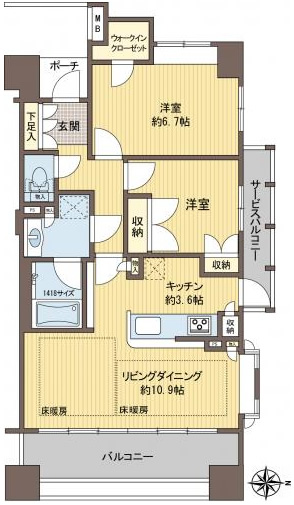 | 間取り / 間取り詳細 | 2LDK LDK14.5畳 / 洋室6.7畳 ※ウォークインクローゼット | ||